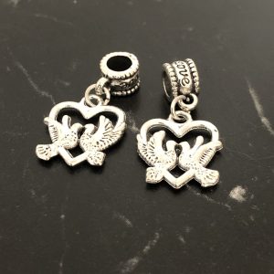 5 perles intercalaire pendentif Coeur,oiseaux