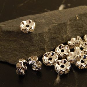 10 Perles intercalaires strass fleurs argent
