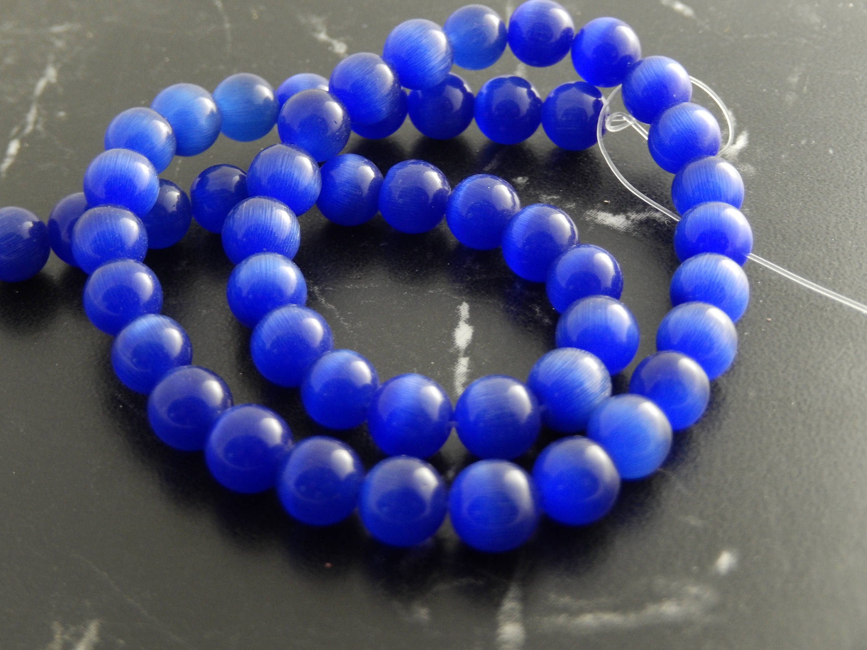 10 Perles oeil de chat bleu royale 8mm