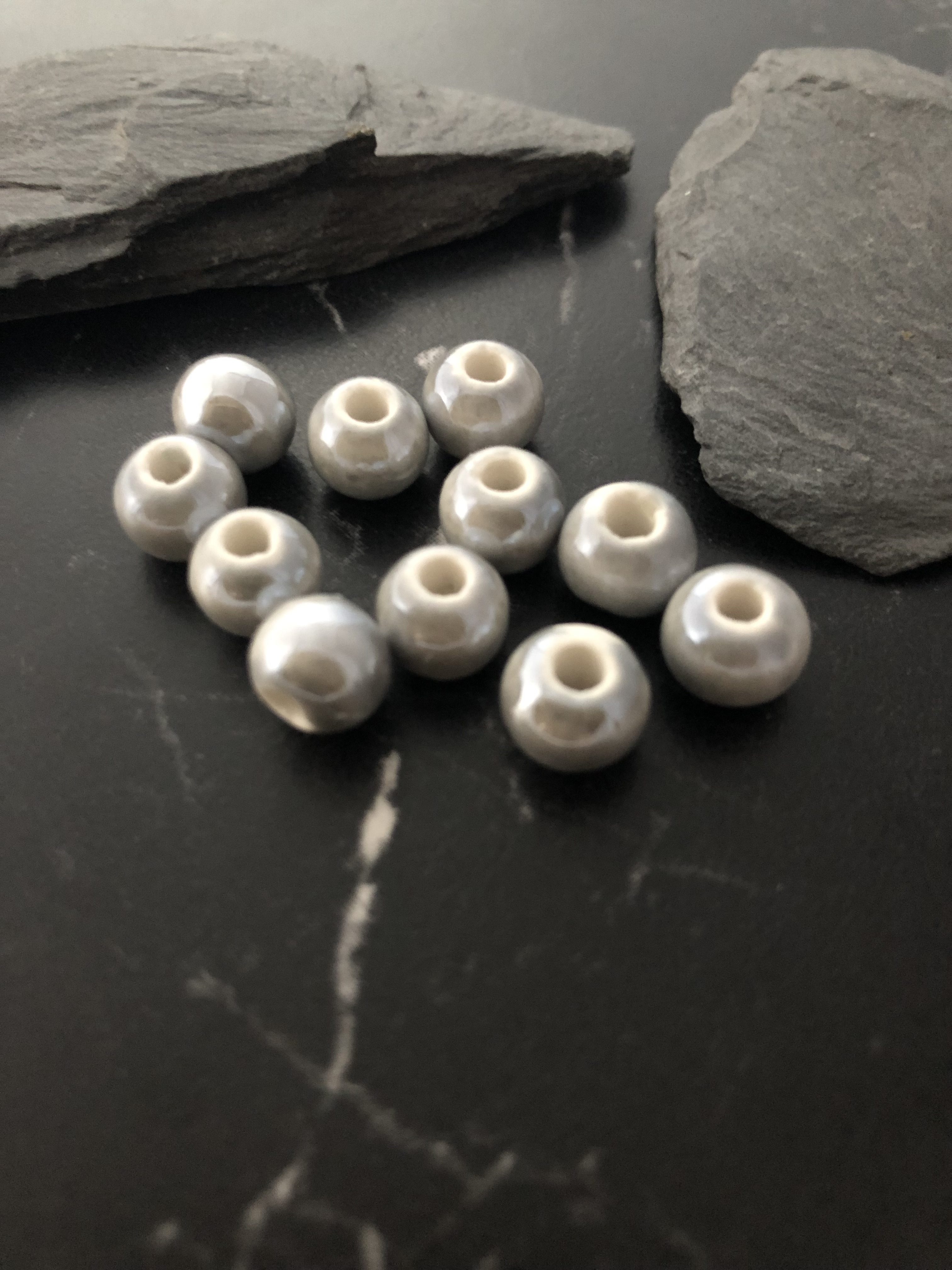 Perles porcelaine 8mm ,lot de 10 perles , passage de fil 2mm