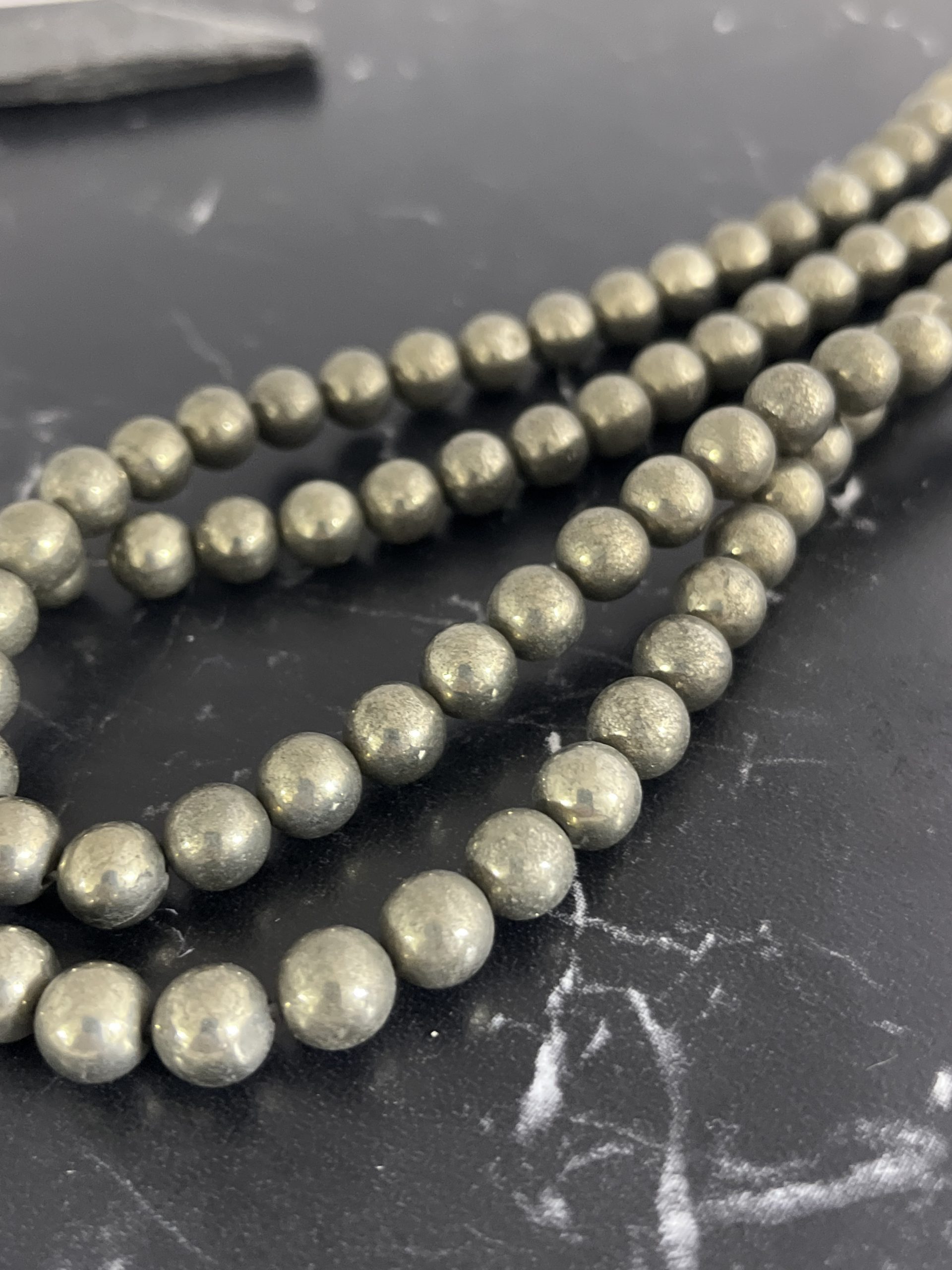 La pyrite est un minéral de couleur métallique, entre l’argenté et le doré, Souvent confondue avec le précieux métal l’or . Elle était utilisée comme mirroir par les Incas et fut un moment nommée “pierre des Incas”.