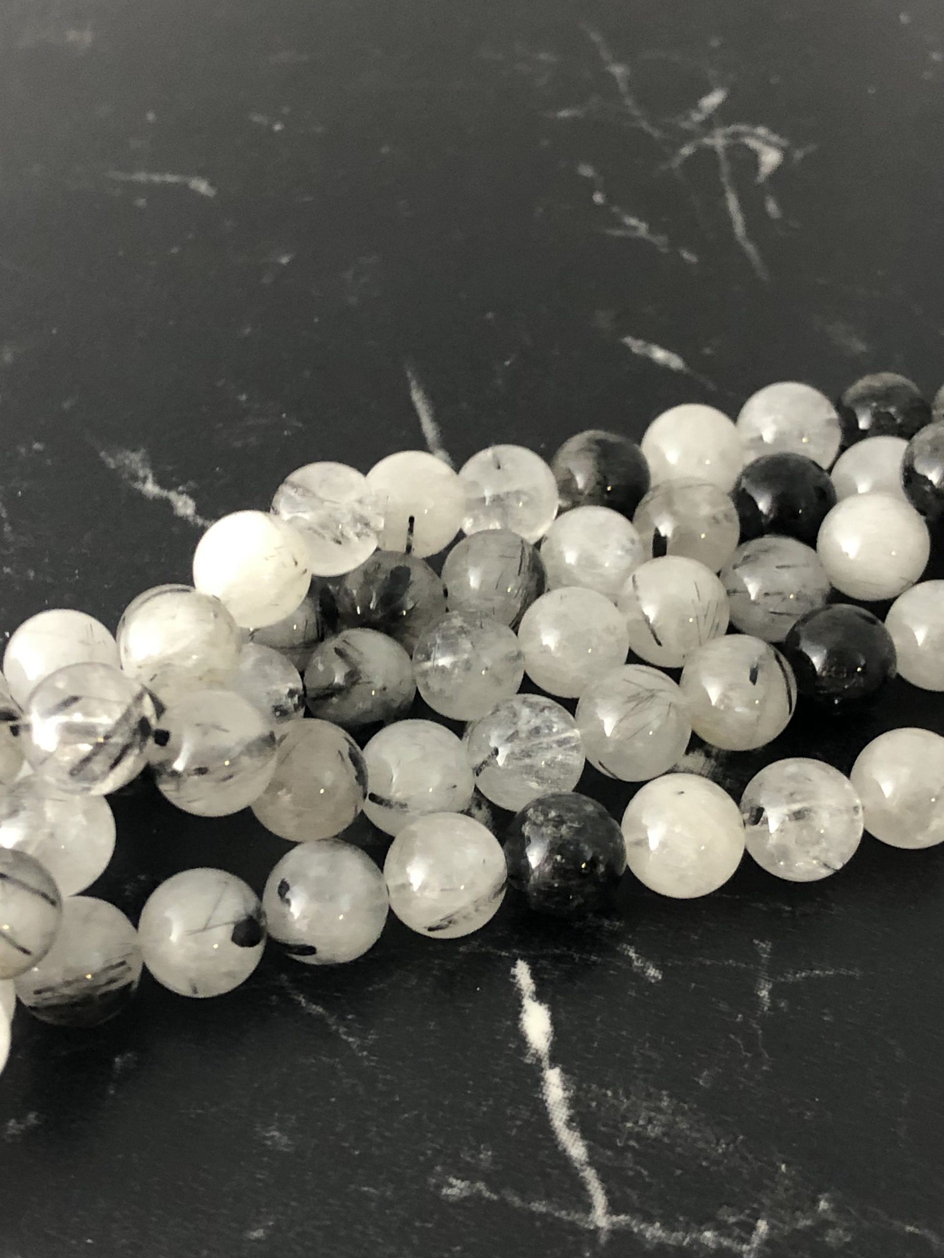 Jolies perles de quartz rutile. Il y a des perles plus blanches et des perles plus grises.