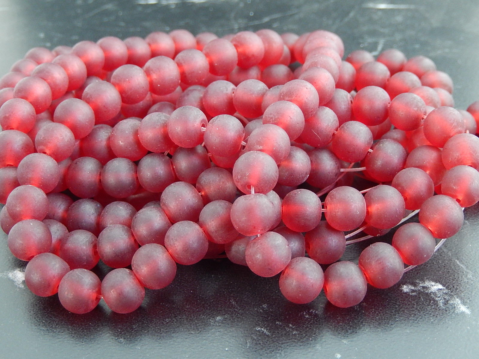 Perles de verre givrés couleur rouge ,lot de 20 ou 105 perles