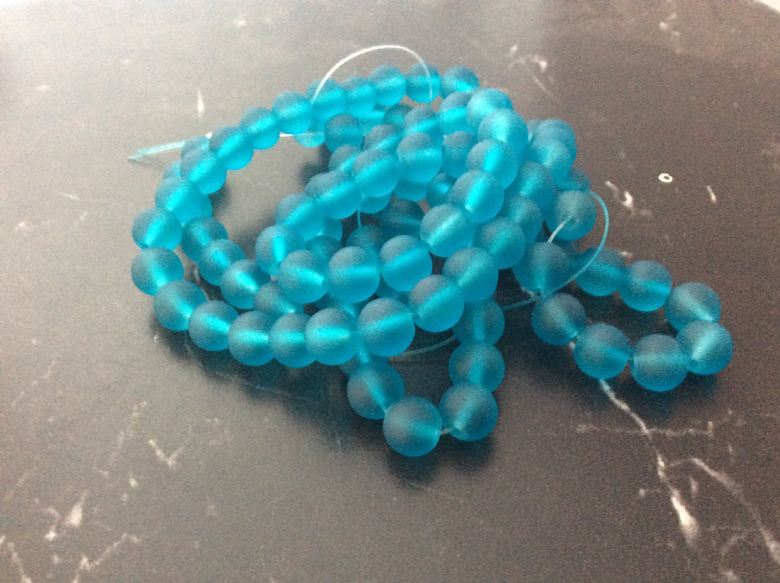 Lot de 20 perles de verre givré couleur turquoise , taille de 8mm pour un passage de fil de 1,mm.