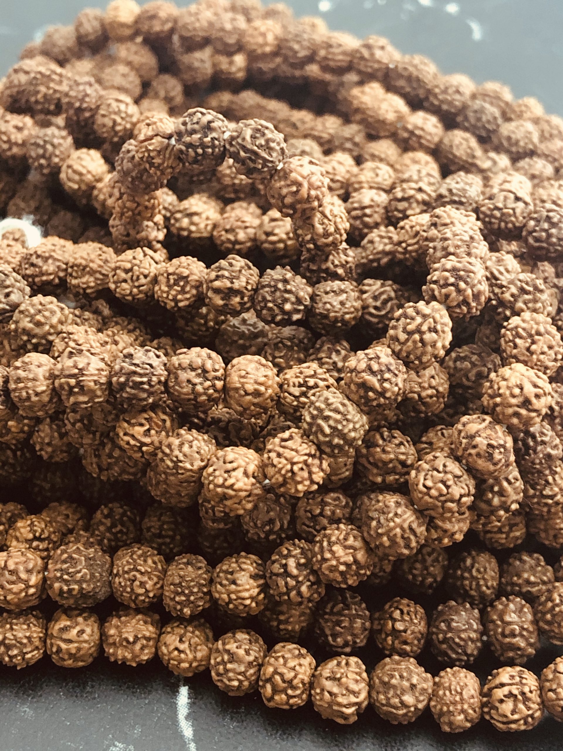 108 Perles de graine de Rudraksha , couleur ocre rouge taille 7/8mm pour un passage de fil 0,8mm