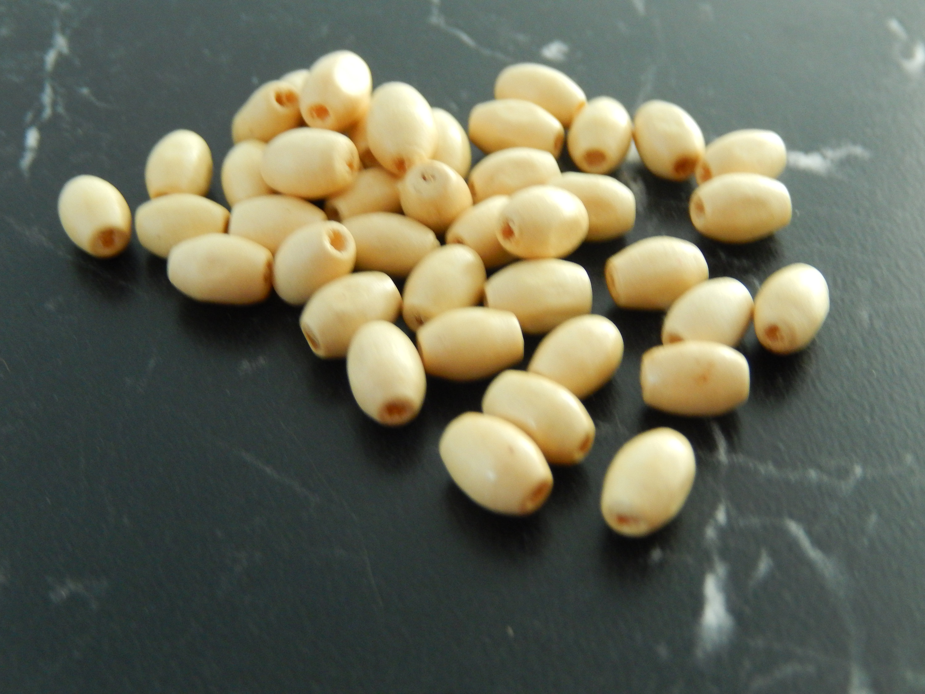 20 perles en bois ovale couleur beige
