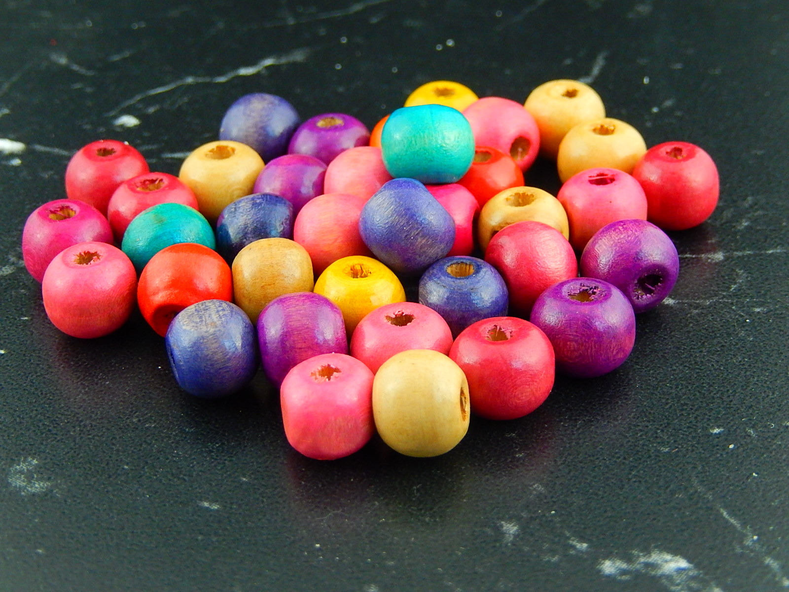 Jolie lot de 20 perles en bois ronde assortiment de couleur
