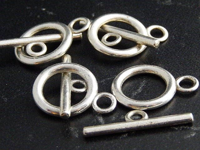 5 fermoirs toggle de forme ronde en style tibétain de métal argenté antique