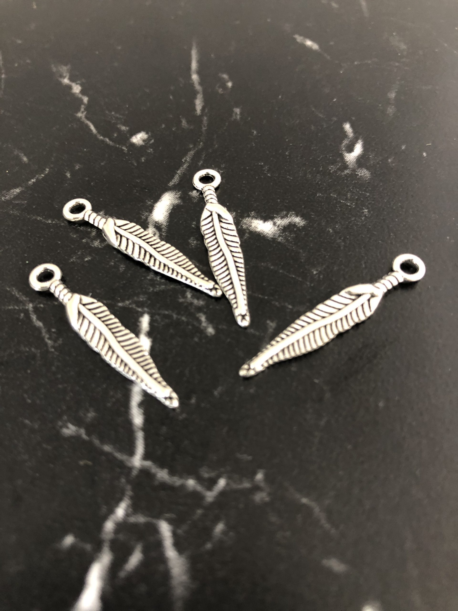 5 breloques pendentifs plume couleur métal argenté taille