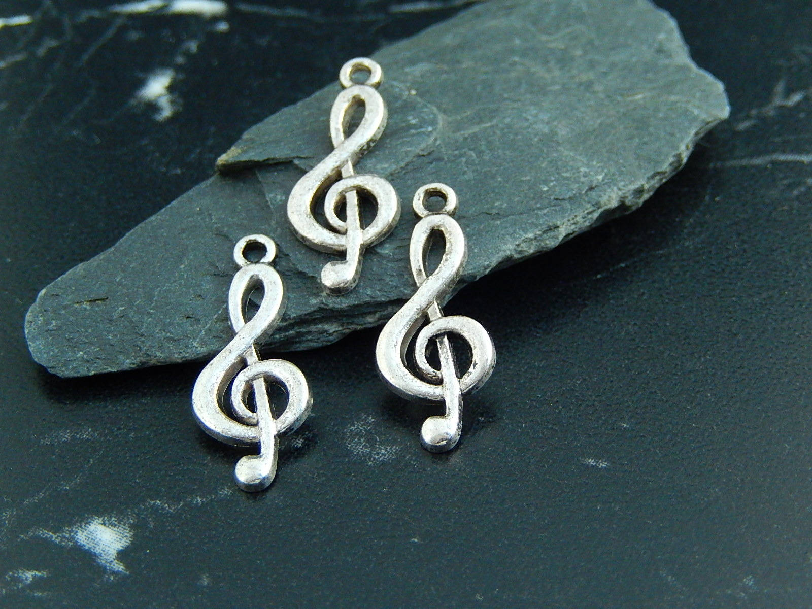 5 pendentifs breloques note de musique couleur argent taille environ 20mmX10mm
