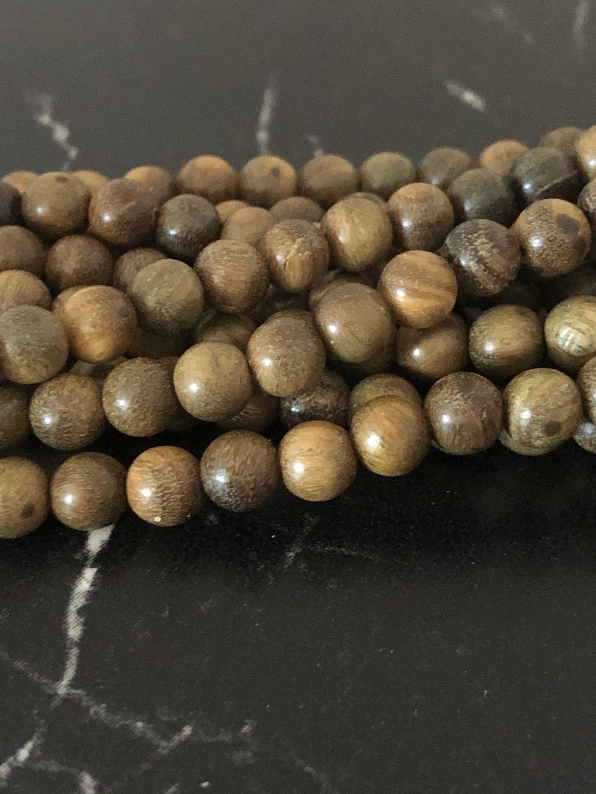 perles bois de santal , lot de 10 ,couleur marron taille environ 6mm, trous: 1 mm