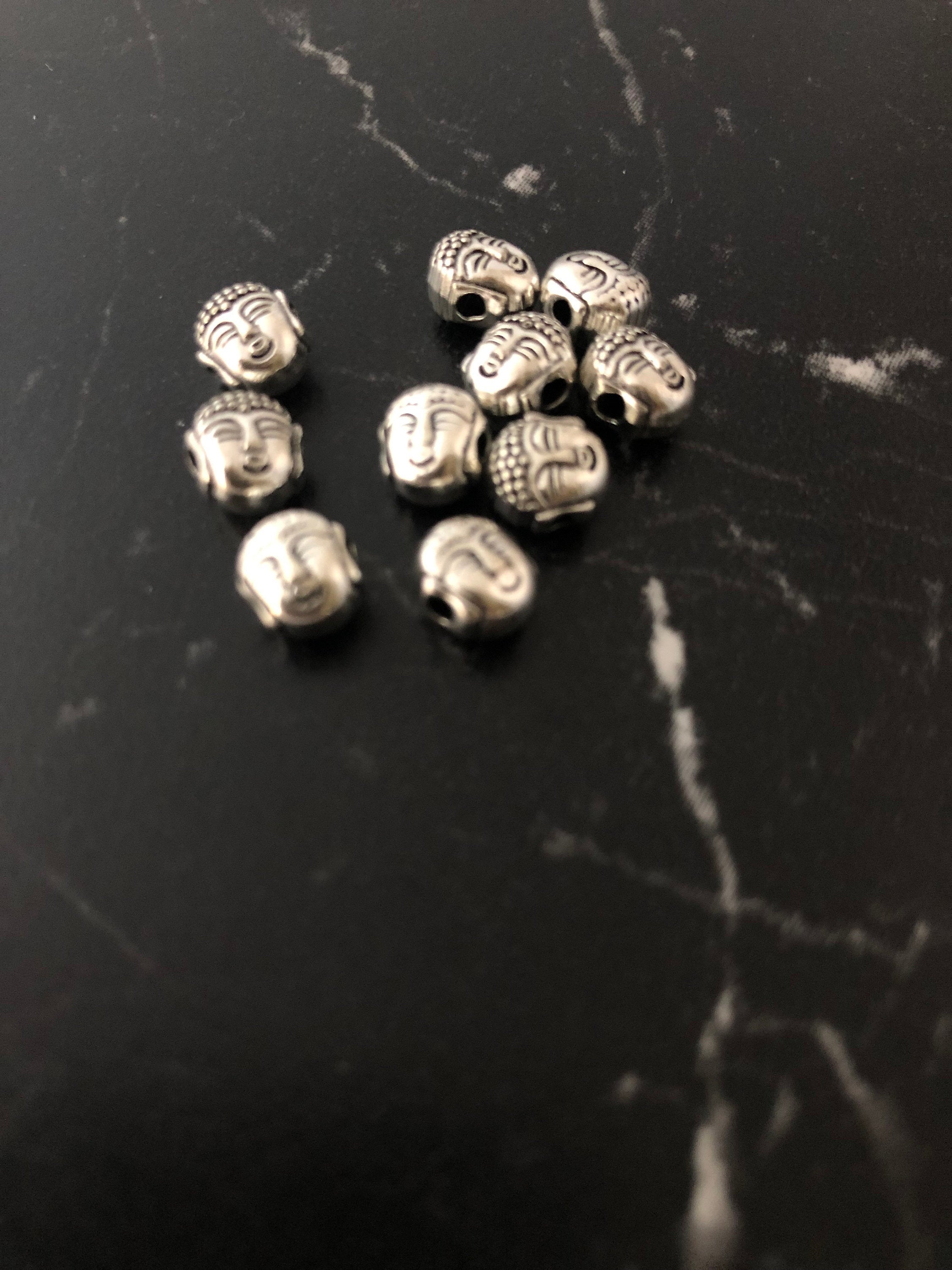 Perles petites tête de bouddha style tibétain argent antique taille longueur 8mm , largeur 7mm ,épaisseur 5mm, pour un passage de fil de 1,5mm.