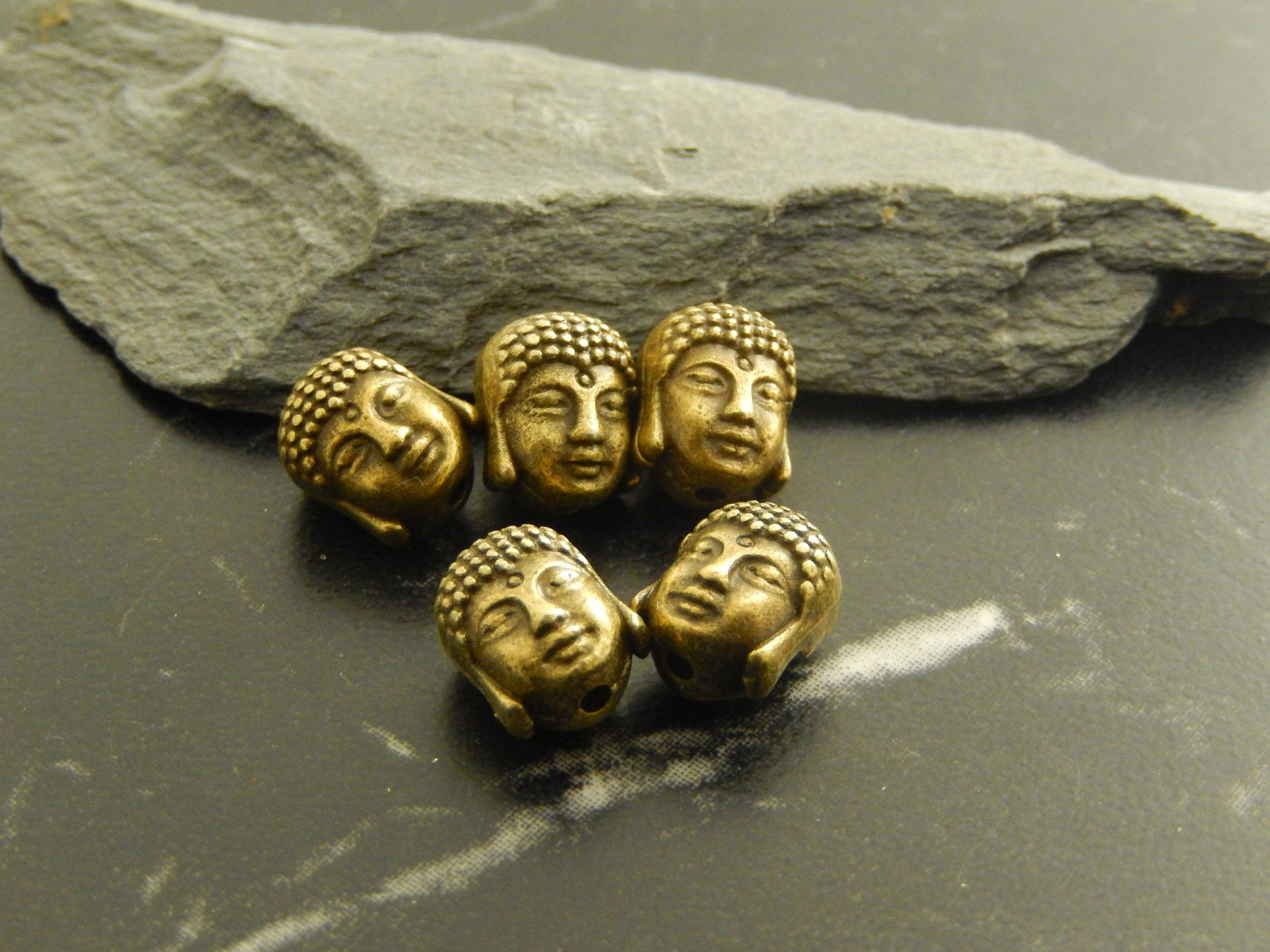 Perles tête de bouddha lot de 5 perles ,style tibétain bronze antique